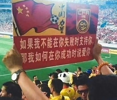 国足: 大家都看不起我,偏偏我也不争气 无人扶我凌云志,我自己也上不去 大家都来笑话我,偏偏我也最好笑 与其逼自己一把,不如放自己一马 强者不抱怨环境,可是我是个弱者 我不光抱怨环境,我还要抱怨强者